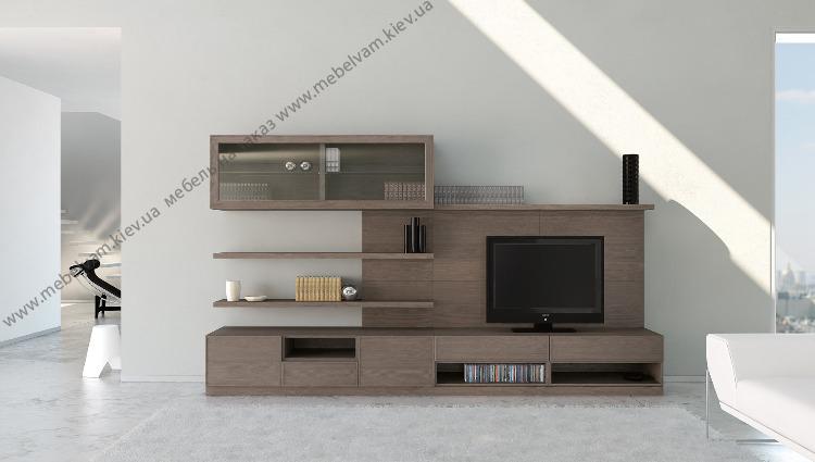 Стенка мебельная в стиле Хай-тек, прямые линии, спокойный ненавязчивый дизайн, каждый мебельный элемент продуман до мелочей. Материал: Корпус, Фасады - ДСП EGGERH 3353 Дуб кортина серый ST11.