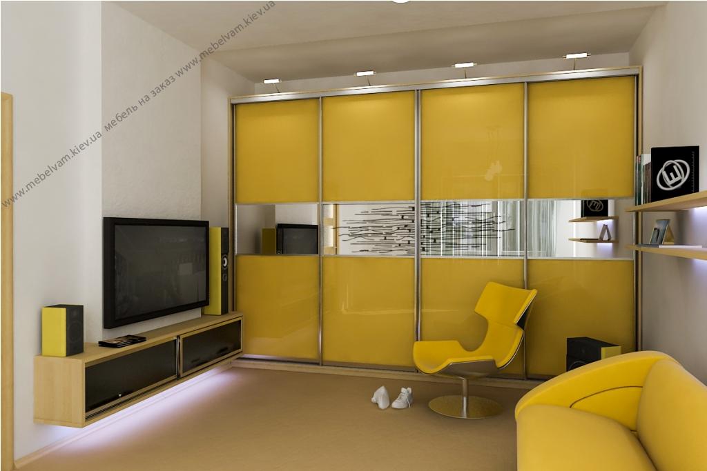Красивый встроенный шкаф-купе четырех дверный, вместительное внутренние наполнение. Система Браун Алюминий. Материал: Корпус - ДСП Береза белая; Фасады Стекло Лакобель; Система Braun - цвет Алюминий.