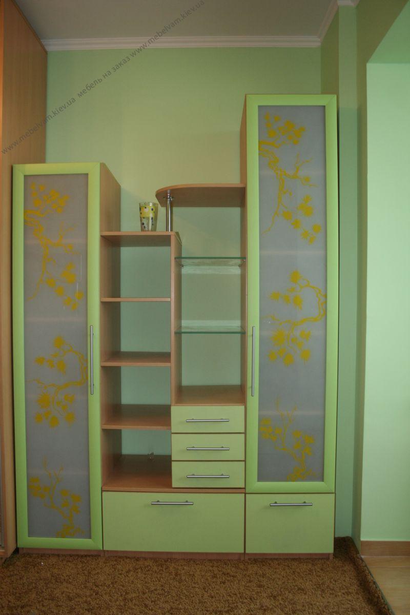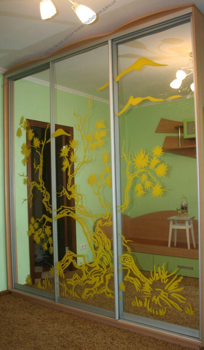 Фасады шкафа - купе - Зеркало с рисунком. Система Braun - цвет Алюминий.Набор мебели для детской комнаты предназначен для двоих детей. В наборе: две кровати, шкаф-купе, горка, стол письменный, навесные полки. Материал: Корпус - ДСП Бук тироль; Фасады - в рамке МДФ Стекло с рисунком, ДСП Зеленая вода.