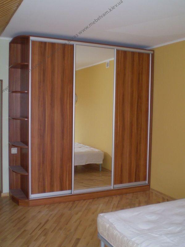 Трехдверный классический шкаф-купе в системе с Braun (Браун) Алюминий. Фасады зеркало и ДСП. Дополняет шкаф, радиусное окончание-полка. Материал: Корпус - ДСП Орех Пегас; Фасады Зеркало,ДСП; Система Braun - цвет Алюминий.
