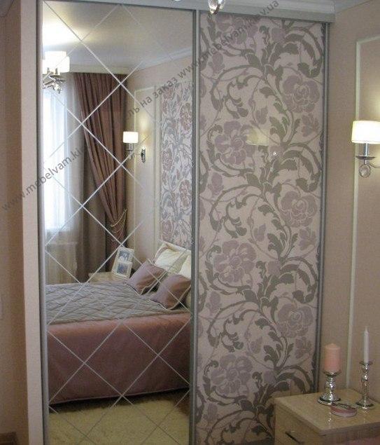 Шкаф-купе на заказ, классический рисунок на фасадах. Такой шкаф-купе украсит спальню или гостиную в классическом стиле. Шкаф-купе встроенный, нижний и верхний рельс крепятся к потолку и полу. Материалы: Фасады - Фотопечать на стекле, Зеркало бронза с нанесением пескоструйного рисунка; Система STARKE - Профиль открытый, цвет Алюминий.