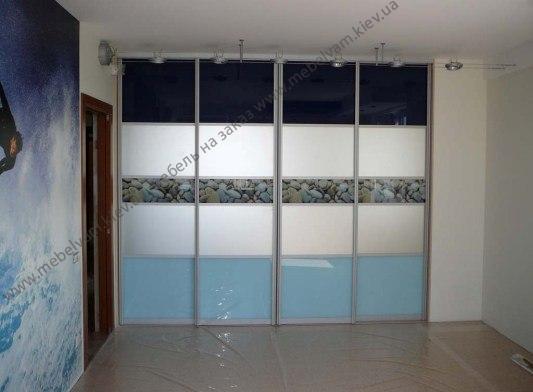 Двери купе с фотопечатью в морском стиле. Материалы: Стекло крашенное RAL 5024 Синяя пастель, RAL 5003 Синий сапфир, Фотопечать; Система STARKE - Профиль открытый, цвет Алюминий.