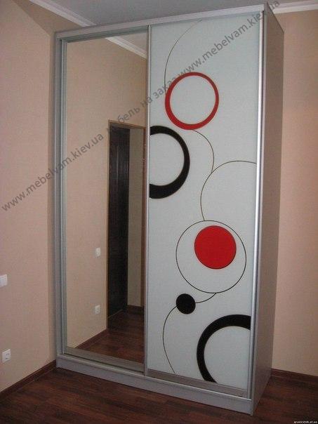 Двухдверный шкаф купе, один фасад - зеркало, второй фасад - пескоструйный рисунок в трех цветах. Материалы: ДСП Kronospan 0881 Алюминий РЕ; Фасады - Зеркало серебро, пескоструйный рисунок в трех цветах; Система STARKE - Профиль открытый, цвет Алюминий.