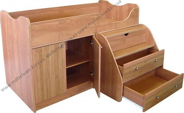 Детская кроватка с выкатными ступеньками и столиком. Материал: Корпус и фасады: Ламинированное ДСП - Ольха Горная темная.