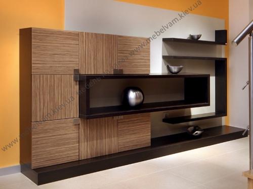 Современная мебельная горка. Плавные очертания мини-горки сделают вашу гостиную особенно уютной. Материал: Корпус - ДСП Черное, Фасады - ДСП Зебрано светлое.
