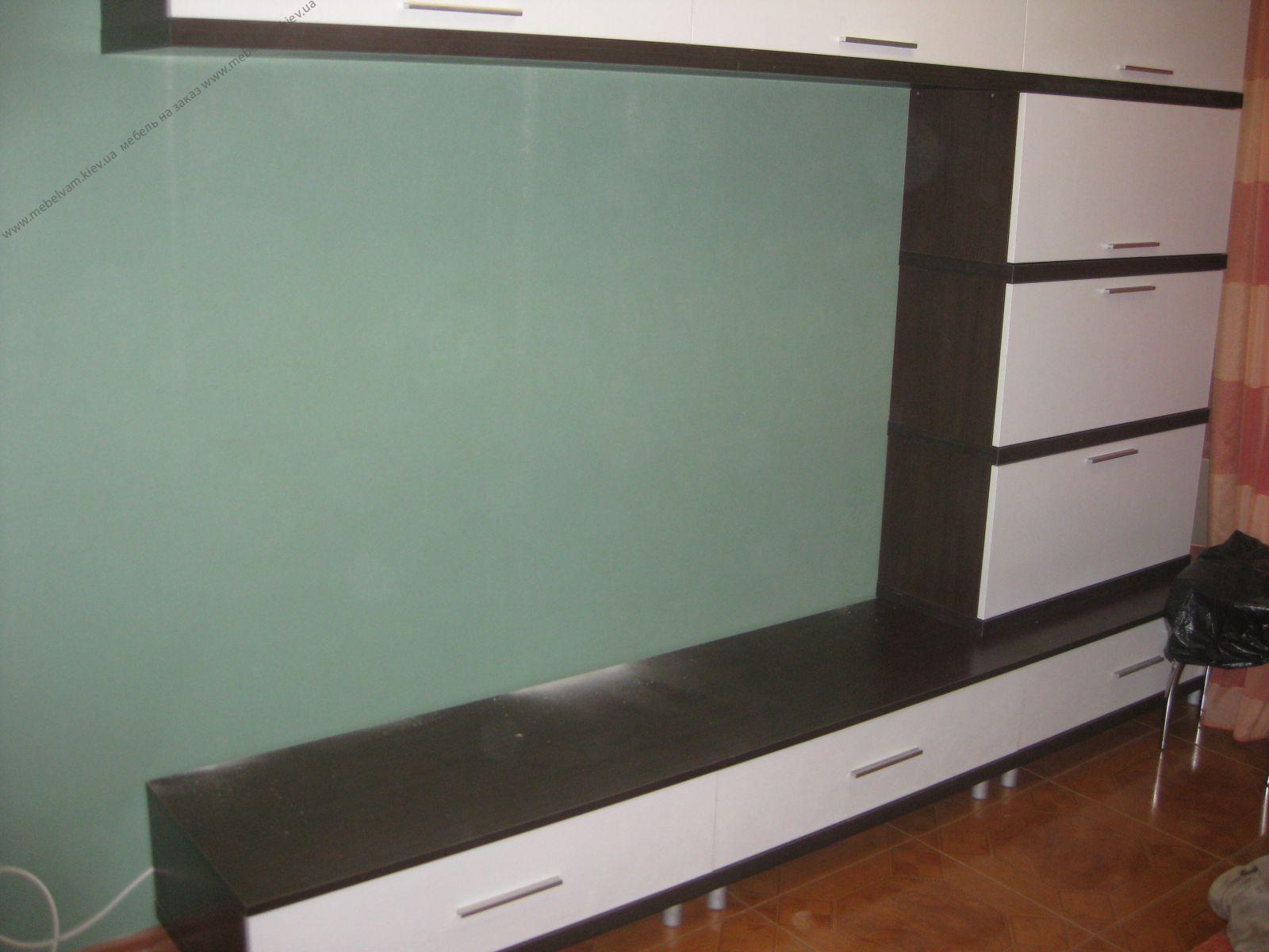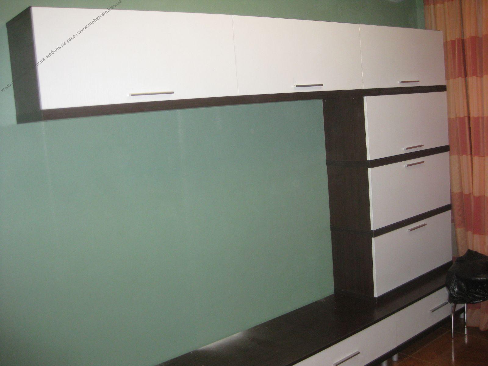 Мебель на современных ножках. Материал: Корпус - ДСП Дуб шоколадный; Фасады - ДСП Белое. Молодежная мебельная горка в красивом сочетании цветов ДСП темного и белого.