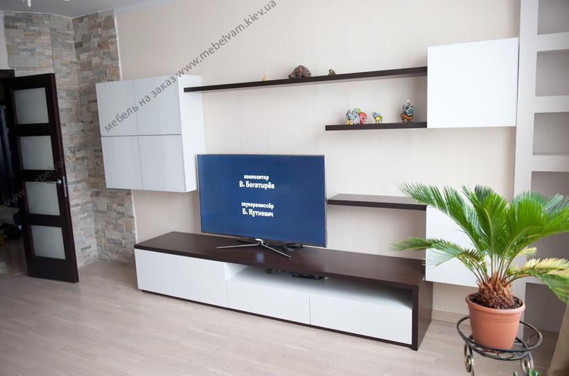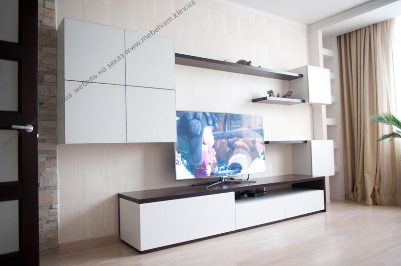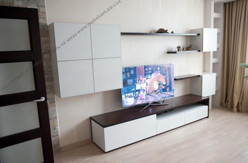 Горка в стиле хай-тек, классическое сочетание материалов: темный корпус, светлые фасады. Материал: Корпус - ДСП Белый; Фасады - ДСП Белый, Столешница и полки - ДСП Дуб Венге темный.