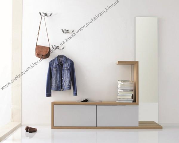Маленькая прихожая, стильный современный комплект мебели для небольшой прихожей. Материал: ДСП EGGER H 3400 Пихта сучковатая натуральн. ST22; ДСП EGGER W 908 Белый базовый SМ
