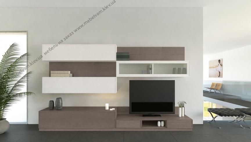 Стенка в стиле хай-тек, спокойный дизайн, светлая цветовая гамма. Прекрасный выбор для современной гостиной. Материал: Корпус - ДСП EGGER Дуб Шато серый перламутровый; Фасады - ДСП EGGER Вудлайн кремовый.