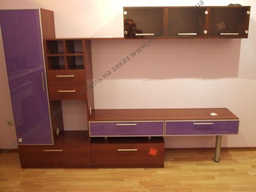 Современная небольшая, маленькая горка на заказ с яркими фиолетовыми фасадами. Незамысловатый дизайн, практичность и удобство этой горки оценят все. Материал: Корпус - ДСП Орех Болонья темный; Фасады - ДСП Орех Болонья темный, Стекло крашенное в алюминиевой рамке, стекло прозрачное на петлях.